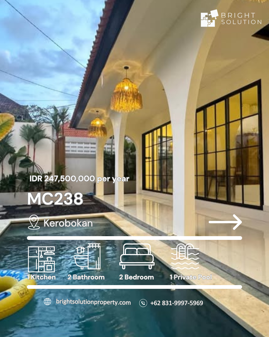 Brand New 2BR Villa for Rent in Kerobokan – Private Pool, Quiet Area, Near Canggu & Seminyak (MC238).